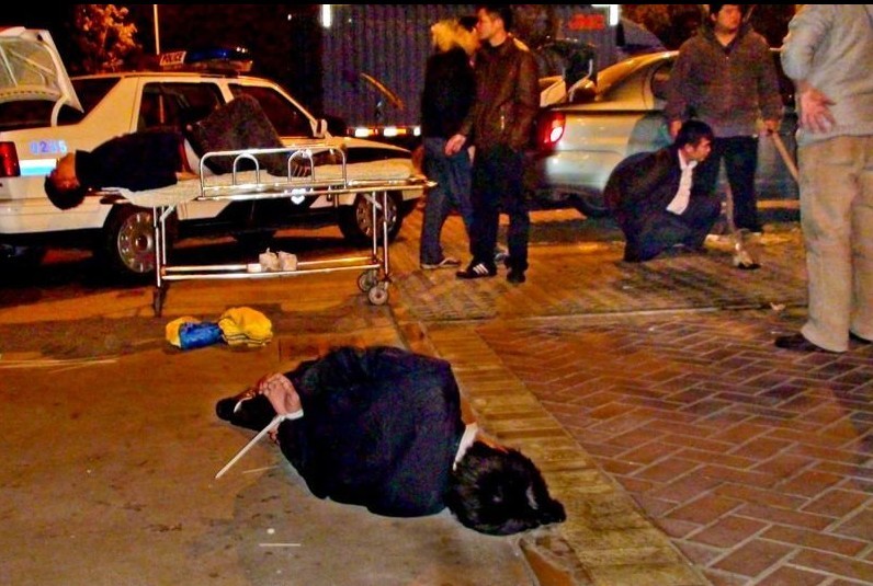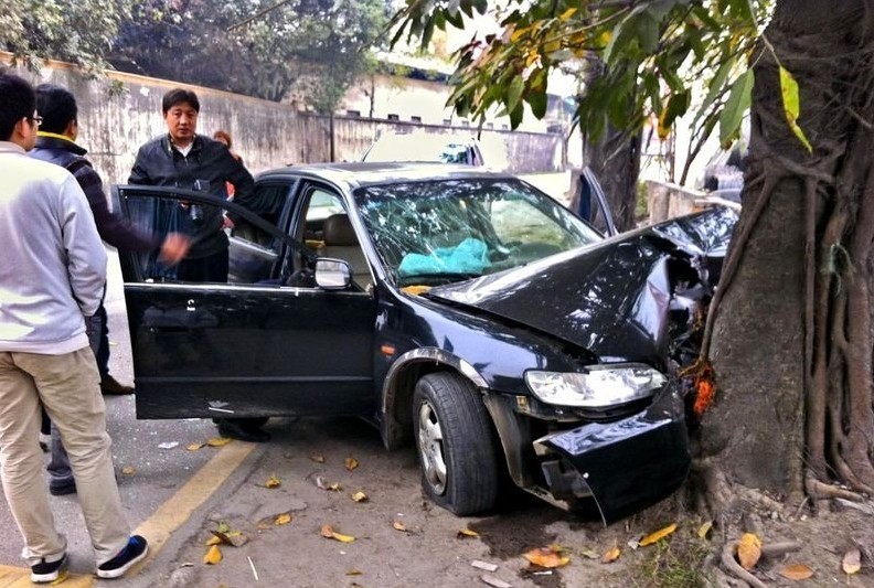 兩嫌疑人駕駛車輛逃跑時(shí)撞上一棵路邊的大樹,車輛頭部嚴(yán)重?fù)p毀,他們慌忙棄車逃走。隨后趕來的警方通過疑犯車中留下的血跡判斷,有嫌疑人受傷后逃走。抓捕組立即調(diào)派更多警力追捕,并在佛山境內(nèi)的所有醫(yī)院展開布控。