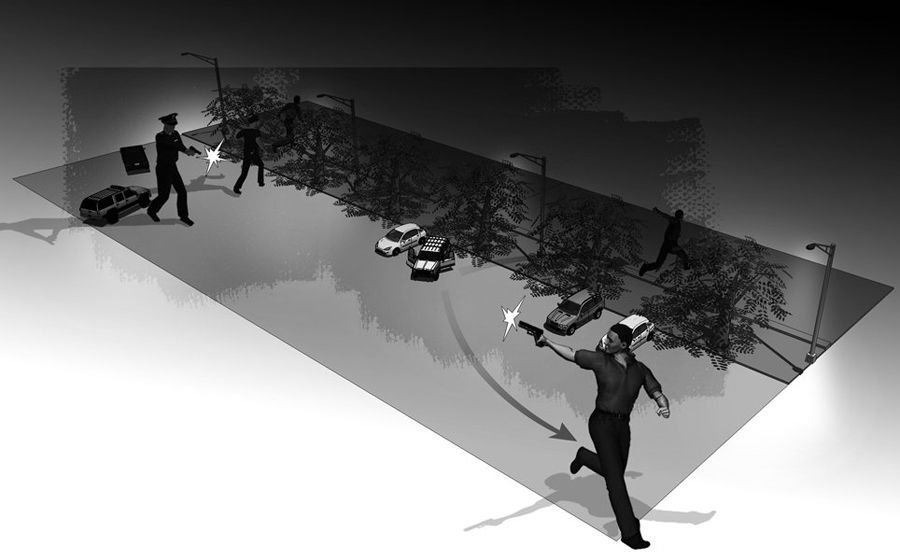 當(dāng)疑犯正要把贓車開走時(shí),早已埋伏在附近的民警立即行動(dòng)展開抓捕。兩名疑犯見勢立即奔逃,民警展開追截。其中一名嫌疑人見民警緊追不舍,拔出手槍朝追捕民警射擊。在鳴槍警告無效后,追捕民警隨即向嫌疑人腿部開槍。兩名嫌疑人李×芳、黃×佳被當(dāng)場擊傷,中槍后,他們又跑了30多米,終于束手就擒。記者在警方后來提供的視頻中聽到當(dāng)時(shí)警匪之間大約開了十余槍。